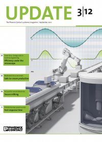 In the new PSR-Motionstop downtime and speed monitor, hazardous movements in machines and systems are monitored and deactivated in an instant in the event of an error. New options arise without compromising safety, particularly during machine setup or troubleshooting operations. Until recently, it was standard practice to shut down a drive by opening the safety equipment via a network or motor contactor, whereas various alternatives are available to designers today.This enables the use of a hand-held operator panel, movements in enabling/inching mode, and movements with reduced speed, for example. If the drive is not shut down, hazardous movements must be monitored by means of suitable safety components. Safe movement For the purpose of detecting movement, standard encoders, safe (approved) SIL encoders, and proximity switches can be connected to the new, safe PSR-Motionstop speed monitor.The safety functions STO (safe torque off), SLS (safe limited speed), SMS (safe speed monitoring), and SDI (safe direction) defined in the EN 61800-5-2 drive standard are available to the user. The safety module is only 35 mm wide and can be parameterized via a removable operator interface and display unit. Since the operator interface and display unit is not necessary for the actual operation of the basic device, it can also be removed in order to prevent manipulations. In addition, several PSR- Motionstop modules can share one operator panel, a cost-saving feature. Fast response time Response time in the event of an error is very important, particularly with regard to drive monitoring. In the case of highly dynamic movements, response times of just a few milliseconds are usually essential, since personal injury and system damage can only be avoided by detecting and deactivating a hazardous movement as quickly as possible. For the purpose of triggering the STO safe stop function, the PSR-Motionstop downtime and speed monitor is fitted with four safe, forcibly guided relay contacts and two safe digital semiconductor outputs. For further processing purposes, the fast digital outputs can be routed to the inputs of a safe controller or to STO/enable inputs of a frequency or servo inverter. Udo Tappe Never a wrong move PSR-Motionstop downtime and speed monitor The PSR-Motionstop downtime and speed monitor can be operated both with and without an operator interface and display unit Safely monitoring the movement of a machine is often more economical than switching it off completely for each setup or maintenance task UPDATE 3|12 11Technology